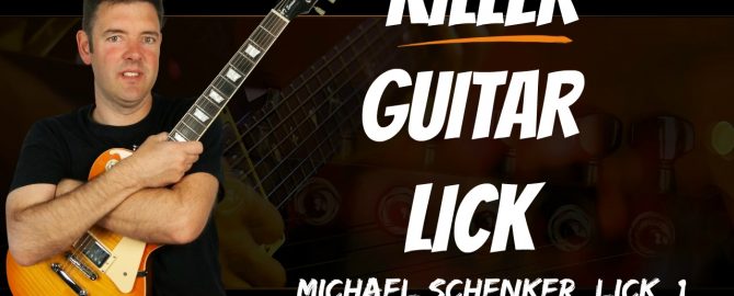 Want some awesome Michael Schenker licks? Then check out this one! Michael Schenker mainly uses pentatonic and blues scales for his rock guitar licks and this one is no exception. It’s coming from the F# blues scale and is typical of many Michael Schenker licks which you can borrow and use in your own rock and metal solos.